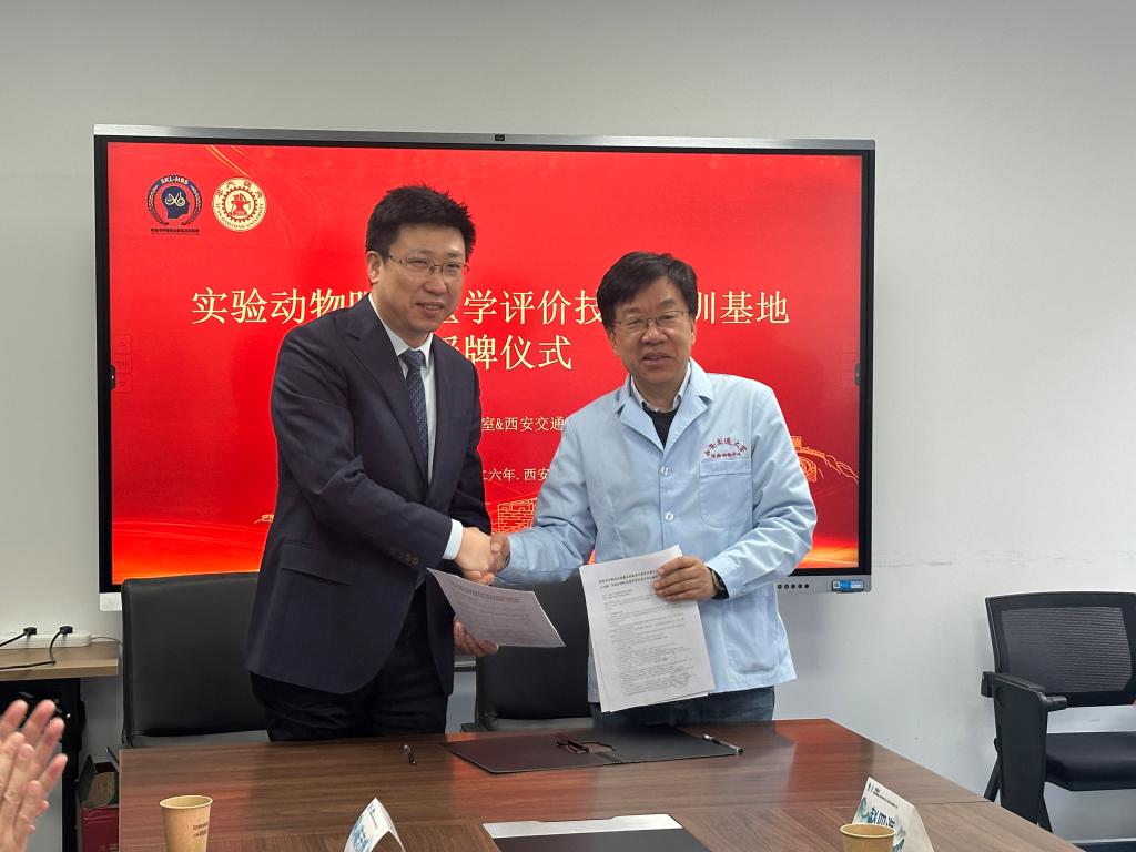 2026年3月20日上午,西安交通大学实验动物中心与“听觉与平衡觉全国重点实验室”(解放军总医院)正式签署合作协议,共同宣布"实验动物听觉医学评价技术培训基地"在实验动物中心落成。这一里程碑事件标志着听觉与平衡觉全国重点实验室全国首个培训基地的正式成立,将为区域科研创新提供强有力的技术支撑。莅临本次会议的专家有解放军总医院全重实验室郭维维副主任、陈伟副主任、陈志峰博士;西安交通大学医学部科学技术与学科建设处吴斌副处长、实验动物中心刘恩岐主任、前沿科学技术研究院李小军教授及我校部分教师代表参会。